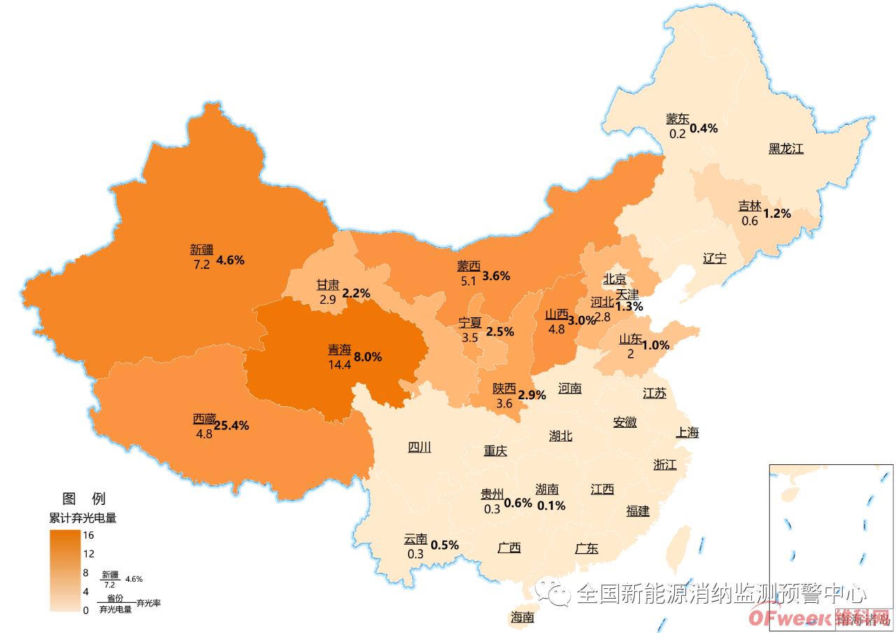 圖片:截至12月底各地區(qū)累計棄光電量(億千瓦時)及棄光率