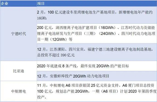 強(qiáng)勁的市場(chǎng)預(yù)期,也激發(fā)了動(dòng)力電池企業(yè)加速擴(kuò)張,特別是各大頭部動(dòng)力電池企業(yè)繼續(xù)跑馬圈地,以提升未來市場(chǎng)占有率。2月2日,寧德時(shí)代發(fā)布公告稱,計(jì)劃在廣東肇慶、四川宜賓、福建寧德建設(shè)三個(gè)生產(chǎn)基地,預(yù)計(jì)將增加產(chǎn)能79GWh,擬投資合計(jì)高達(dá)290億元,而在前不久的2020年12月31日,寧德時(shí)代剛宣布390億元的擴(kuò)產(chǎn)計(jì)劃。2月3日,億緯鋰能(97.500,-6.10, -5.89%)也發(fā)布公告,孫公司億緯動(dòng)力香港擬1.28億美元設(shè)惠州億緯動(dòng)力以擴(kuò)大動(dòng)力電池生產(chǎn)規(guī)模。2021年,注定是各大動(dòng)力電池企業(yè)產(chǎn)能再擴(kuò)張之年。根據(jù)消息顯示,寧德時(shí)代車?yán)餅稠?xiàng)目正在有序推進(jìn),一、二號(hào)廠房預(yù)計(jì)今年10月投入使用。中航鋰電廈門A6項(xiàng)目也在加緊設(shè)備安裝調(diào)試,即將迎來正式投產(chǎn)。而早在2020年11月,蜂巢能源宣布在歐洲建設(shè)24GWh的工廠,總投資達(dá)到155億元。