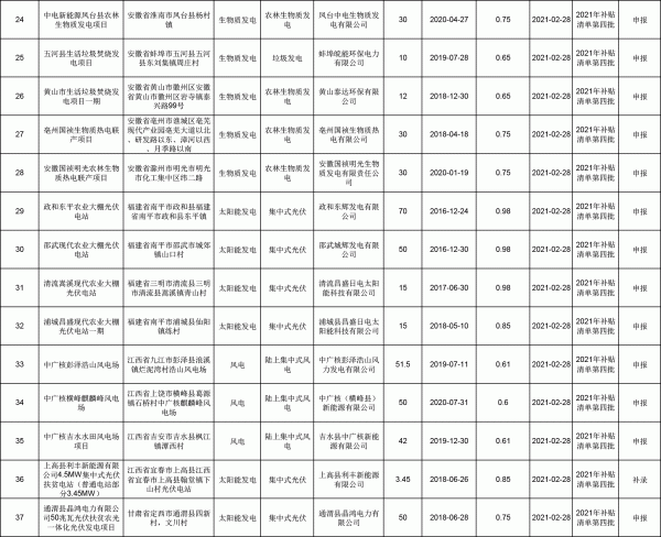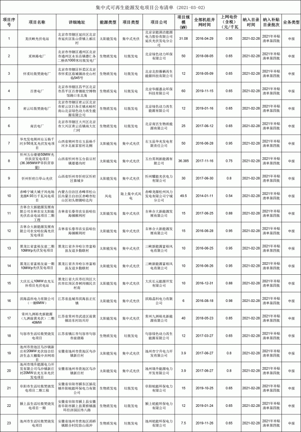 3月1日消息,國(guó)家電網(wǎng)日前公布2021年第四批可再生能源發(fā)電補(bǔ)貼項(xiàng)目清單,公告顯示此次納入2021年第四批可再生能源發(fā)電補(bǔ)貼清單的項(xiàng)目共計(jì)4682個(gè),核準(zhǔn)/備案容量5033.16MW。其中:集中式風(fēng)電項(xiàng)目數(shù)量4個(gè),核準(zhǔn)/備案容量195.5MW;集中式和分布式太陽(yáng)能發(fā)電項(xiàng)目數(shù)量分別為19個(gè)、4663個(gè),核準(zhǔn)/備案容量分別為527.08MW、2971.74MW;集中式生物質(zhì)發(fā)電項(xiàng)目數(shù)量為14個(gè),核準(zhǔn)/備案容量分別為317.5MW。