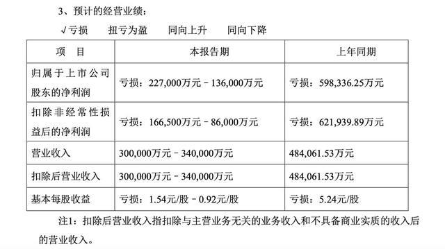 早些時間,該公司發(fā)布2020年度業(yè)績預(yù)告顯示,在2020年1月1日至2020年12月31日時期內(nèi),公司營業(yè)收入300,000萬元–340,000萬元,歸屬于上市公司股東的凈利潤虧損227,000萬元–136,000萬元,基本每股收益虧損1.54元/股–0.92元/股,營業(yè)收入、歸屬于上市公司股東的凈利潤與基本每股收益虧損均較2019年有所下降。