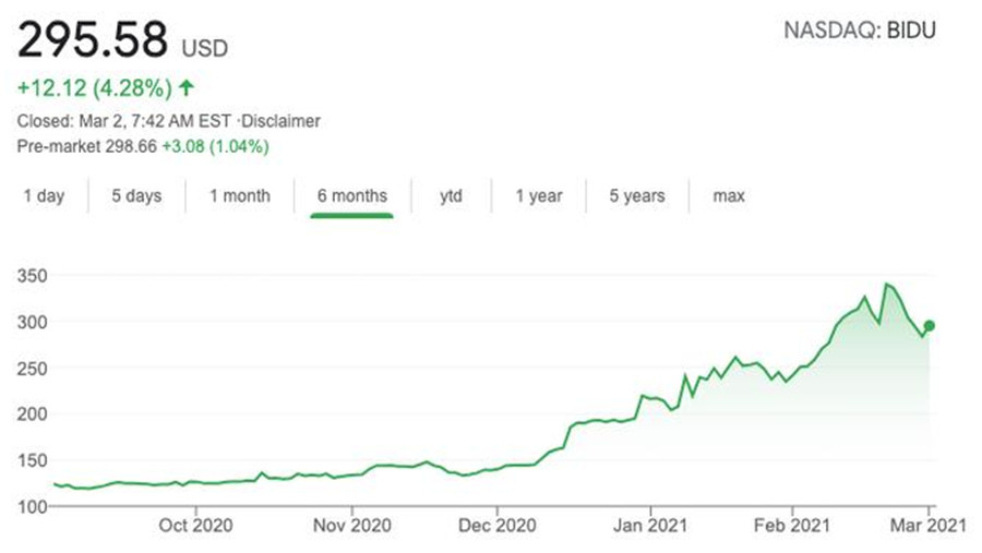 (百度近6個(gè)月股價(jià))