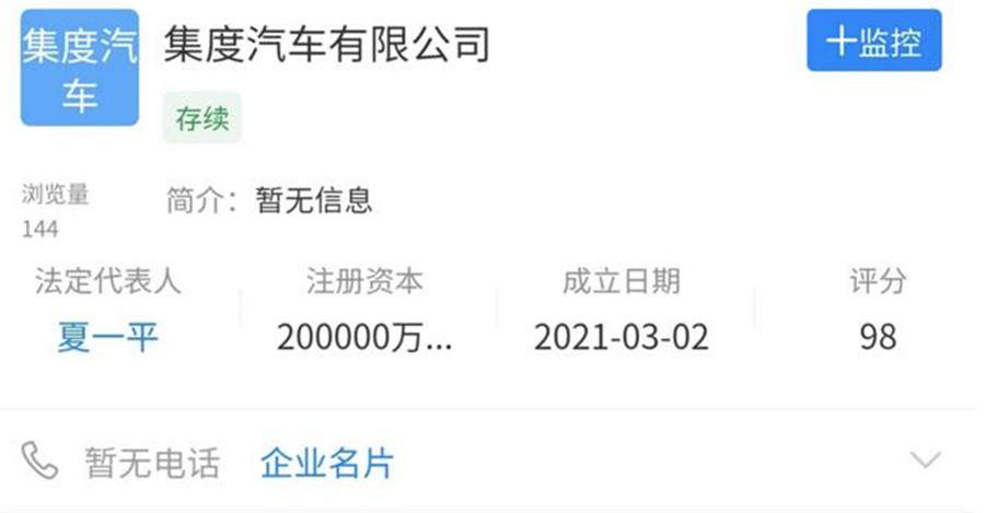 該公司的成立,意味著百度與吉利“牽手”成功,百度造車正式落地。不過目前哪家公司作為主導(dǎo)地位暫時(shí)不清楚。