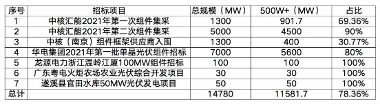 近日以來,以中核、華電為代表的央國企已經(jīng)開啟或完成2021年第一批次的光伏組件設(shè)備招標(biāo)工作,根據(jù)招標(biāo)要求發(fā)現(xiàn),大尺寸組件的需求已進(jìn)入白熱化階段。