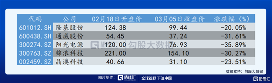 光伏板塊也不例外,以光伏抱團(tuán)股為例,從年后開盤,截止3月5日收盤,整體跌幅在20%-30%之間,也是一片慘象。