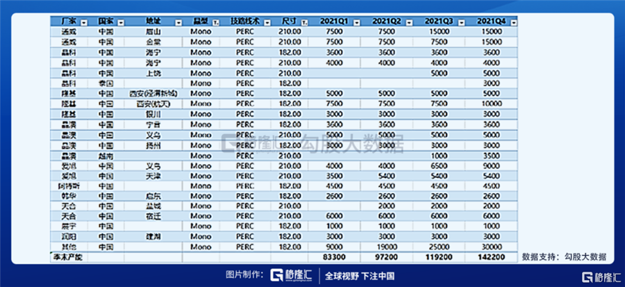 ②電池片:本已產(chǎn)能過剩,但迫于不擴(kuò)產(chǎn)大尺寸便被人淘汰,2020年加快投產(chǎn)計(jì)劃,2021年產(chǎn)能高達(dá)140GW+,已經(jīng)接近2020年全球150GW的需求,新增產(chǎn)能已經(jīng)覆蓋全球所需;2021年底預(yù)計(jì)產(chǎn)能可達(dá)320GW。