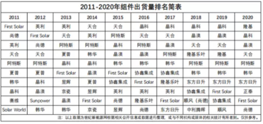 十年,組件市場(chǎng)雖有變化,但是強(qiáng)者恒強(qiáng)依舊是主基調(diào)。隨著2021年的起始,光伏利好信息頻出,未來,中國(guó)組件企業(yè)十席能夠占據(jù)幾席,隆基是否王冠依舊,日升能否業(yè)績(jī)翻臉,天合又將演繹出怎樣的精彩……這些都將是精彩的看點(diǎn)。