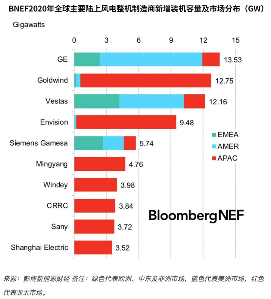 五是中車(chē)風(fēng)電、三一重能歷史首次殺入全球前十。
