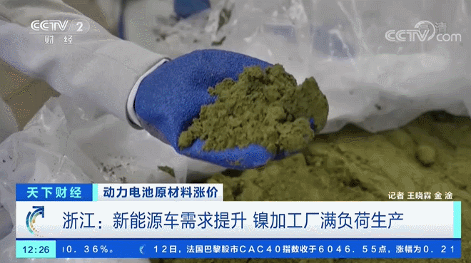 記者 王曉霖:我手上的這個(gè)綠色的粉末是氫氧化鎳,它是由鎳原礦通過(guò)濕法冶煉而來(lái)的,從海外運(yùn)到國(guó)內(nèi)的,它的鎳含量大約是在35%到40%,經(jīng)過(guò)進(jìn)一步加工去除雜質(zhì)以后,就可以做成中間產(chǎn)品硫酸鎳。