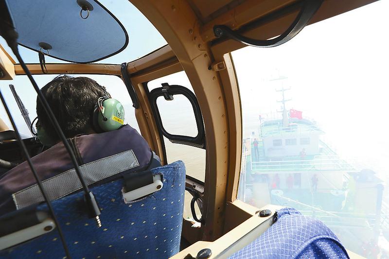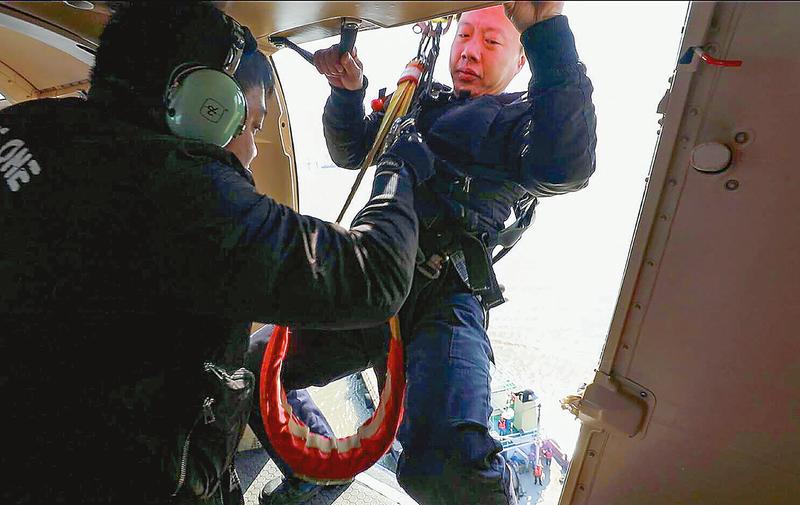 直升機(jī)鎖定船只并懸停,準(zhǔn)備實(shí)施救援