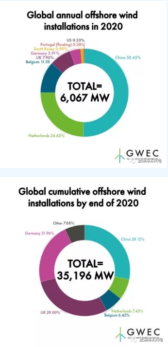 根據(jù)全球風(fēng)能委員會(huì)GWEC發(fā)布的最新數(shù)據(jù),2020年全球海上風(fēng)電新增裝機(jī)容量6.067GW,其中中國(guó)新增容量超過(guò)3GW,占全球新增一半以上。這是中國(guó)連續(xù)第三年在海上風(fēng)電年新增裝機(jī)容量方面居世界首位。