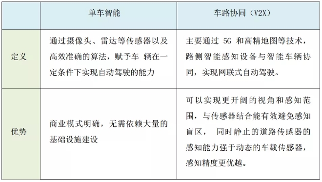 表 單車(chē)智能與車(chē)路協(xié)同技術(shù)路線對(duì)比