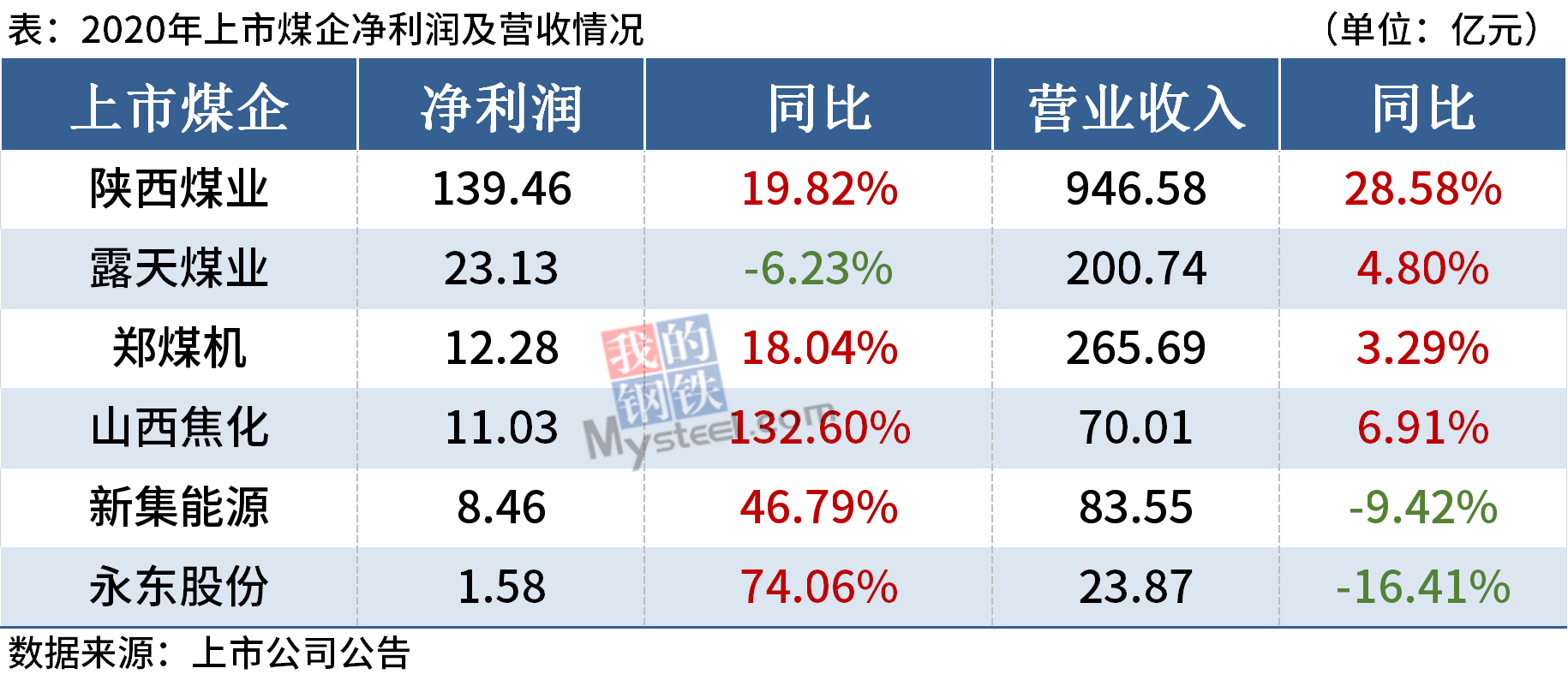 近日,陜西煤業(yè)發(fā)布2020年年度業(yè)績快報,2020年公司實現(xiàn)歸屬于上市公司股東的凈利潤139.46億元,同比增加19.82%。