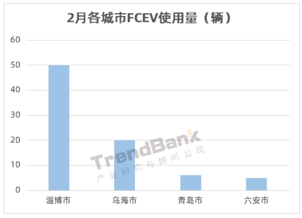 2021年2月FCEV使用城市:淄博第一、烏海第二、青島第三