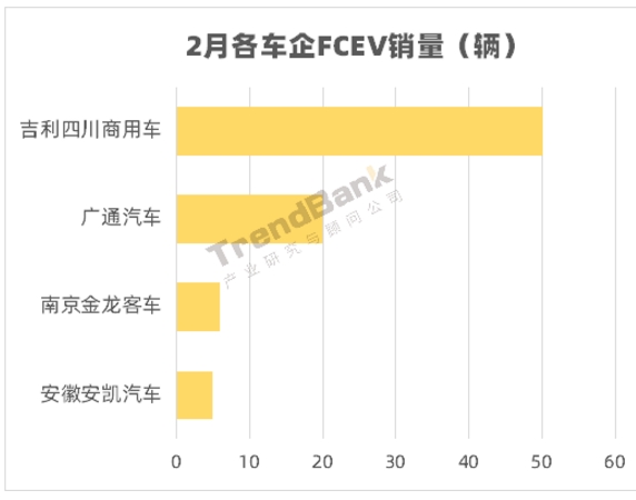 2021年2月FCEV銷量:吉利最多、廣通汽車次之