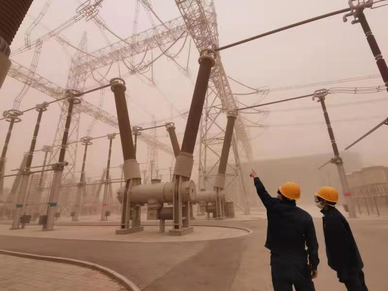 “巡視一圈下來,安全帽、眼罩、口罩、衣服上全是土……”正常情況下,運維人員早上9點半開始巡視,2個小時巡視一圈后就可以稍事休息了;但今天風沙大,他們一上午都沒閑著,時刻關(guān)注著站內(nèi)設(shè)備運行情況。