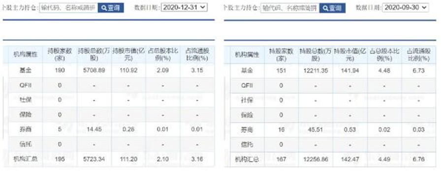 一個可對比的數(shù)據(jù)是:2020年第三季度,比亞迪的持倉機構(gòu)數(shù)為167家,但持股總數(shù)達到12256萬股,占流通股6.76%,對比來看,僅2020年最后一個季度,機構(gòu)減持了近半。