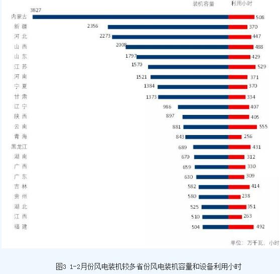 分類(lèi)型看,1-2月份,全國(guó)水電設(shè)備平均利用小時(shí)為401小時(shí),比上年同期提高21小時(shí)。在水電裝機(jī)容量排前10的省份中,貴州、云南、四川、廣西和湖北分別增加71、70、55、31和8小時(shí),湖南、福建、青海、廣東和浙江同比分別降低200、75、26、19和18小時(shí);全國(guó)火電設(shè)備平均利用小時(shí)為732小時(shí)(其中,燃煤發(fā)電和燃?xì)獍l(fā)電設(shè)備平均利用小時(shí)分別為762和379小時(shí)),比上年同期提高96小時(shí)。分省份看,全國(guó)共有18個(gè)省份火電設(shè)備利用小時(shí)超過(guò)全國(guó)平均水平,其中甘肅和青海超過(guò)900小時(shí),新疆、四川、北京、江西、重慶、寧夏、湖北、內(nèi)蒙古、陜西和廣西超過(guò)800小時(shí),而西藏僅為66小時(shí)。與上年同期相比,全國(guó)除海南、黑龍江、遼寧和內(nèi)蒙古外,其他省份火電利用小時(shí)均同比提高,其中重慶、貴州、浙江和云南提高超過(guò)200小時(shí),分別為274、254、234和234小時(shí);核電設(shè)備平均利用小時(shí)1147小時(shí),比上年同期提高176小時(shí);全國(guó)并網(wǎng)風(fēng)電設(shè)備平均利用小時(shí)419小時(shí),比上年同期提高106小時(shí);全國(guó)太陽(yáng)能發(fā)電設(shè)備平均利用小時(shí)192小時(shí),比上年同期提高25小時(shí)。