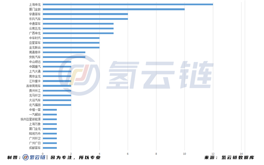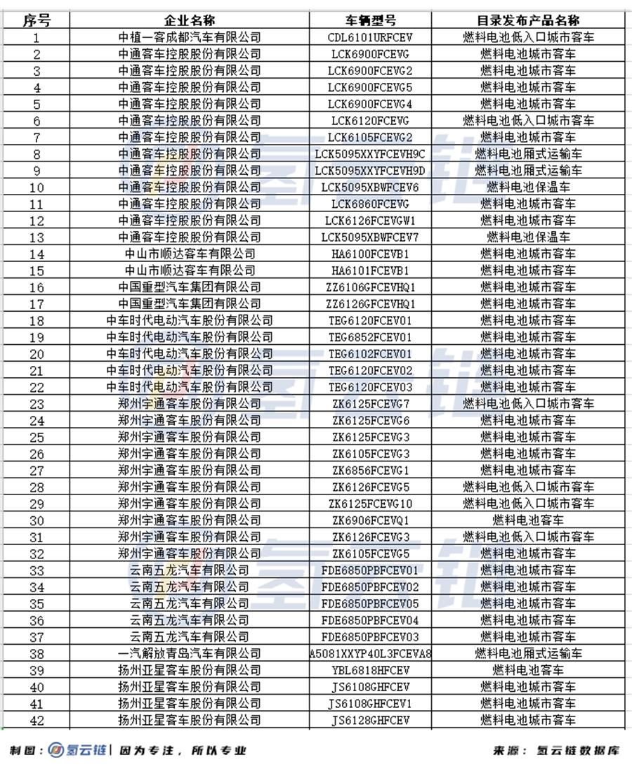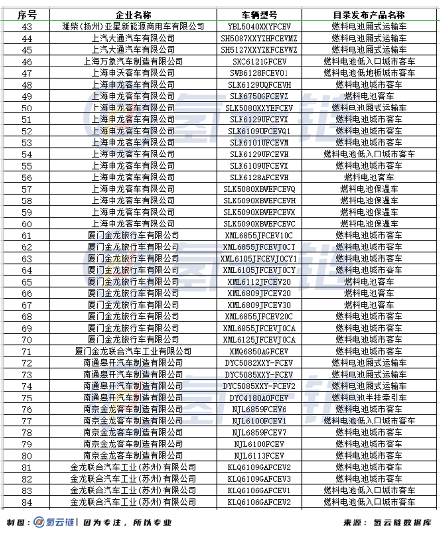 而《免征購置稅目錄》中燃料電池車企方面,上海申龍以12款車型位列榜首,廈門金旅以10款車型排名第二,東風(fēng)汽車、宇通客車以6款車型排名并列第三。廣西申龍、云南五龍、中通客車、金龍聯(lián)合等車企排名依次遞減。