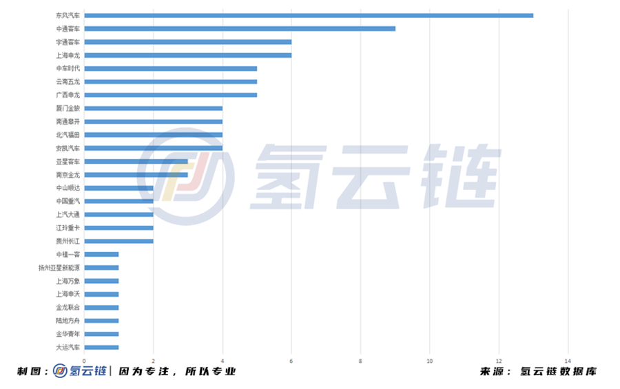 而在《減免車船稅目錄》中燃料電池車企方面,東風(fēng)汽車以13款車型位列榜首,中通客車以9款車型排名第二,上海申龍以6款車型排名第三。宇通客車、廣西申龍、云南五龍、中車時(shí)代、安凱汽車等車企排名依次遞減。