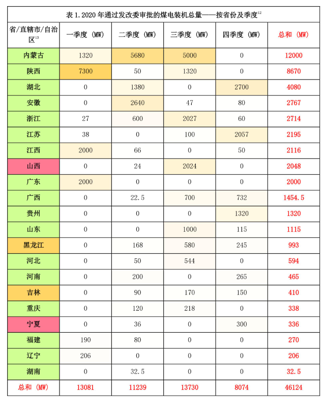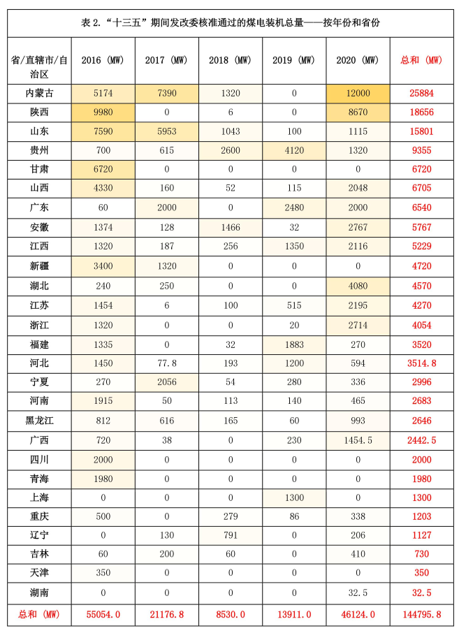 1.2020年新通過審批煤電總量同比增長231.6%,不利于建設(shè)低碳新型電力系統(tǒng)