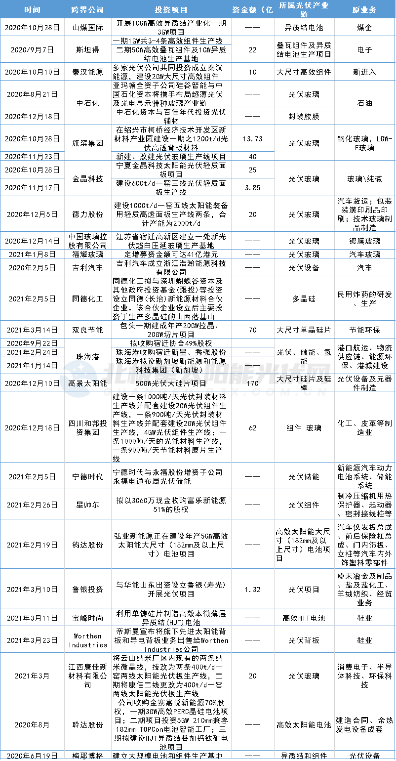 “碳中和”催生新機(jī)遇,光伏市場(chǎng)龐大需求潛力逐步顯現(xiàn)之時(shí),一大批行業(yè)外名企及資本競(jìng)相入場(chǎng),以轉(zhuǎn)型、跨界、并購(gòu)等各種途徑入局,試圖搭上中國(guó)光伏產(chǎn)業(yè)發(fā)展的快車。