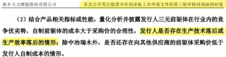 在被問詢的隊伍里,位于新鄉(xiāng)的天力鋰能股份有限公司(以下簡稱“天力鋰能”),于日前披露了關(guān)于第四輪審核問詢函的回復(fù)。