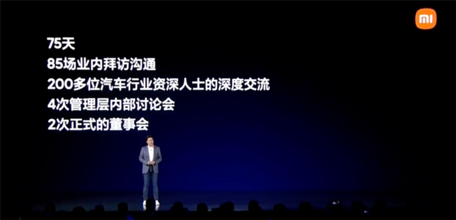 自2021年1月15日集團(tuán)董事會(huì)提議研究電動(dòng)汽車發(fā)展前景開(kāi)始,到今天共75天里,小米進(jìn)行了85場(chǎng)業(yè)內(nèi)拜訪溝通、與200多位汽車行業(yè)資深人士進(jìn)行深度交流、開(kāi)展了4次管理層內(nèi)部討論會(huì),以及2次正式的董事會(huì)。