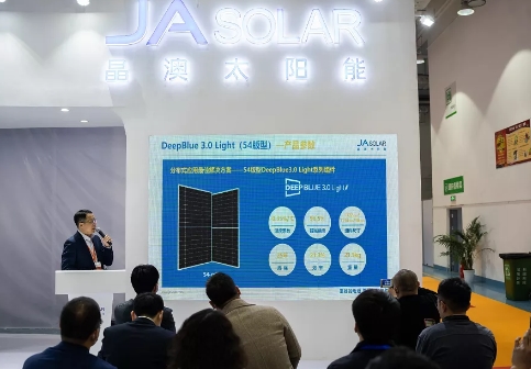 此次展會中,晶澳展出了包括新品DeepBlue 3.0 Light在內(nèi)的DeepBlue 3.0系列高效組件,受到參會人員的廣泛關(guān)注。該系列產(chǎn)品結(jié)合了新一代高效PERC電池技術(shù)PERCIUM+、摻鎵硅片、MBB以及半片等技術(shù),具備高轉(zhuǎn)換效率、優(yōu)異的發(fā)電能力和出色的可靠性表現(xiàn),可廣泛應(yīng)用于不同場景,滿足客戶的多樣化需求。