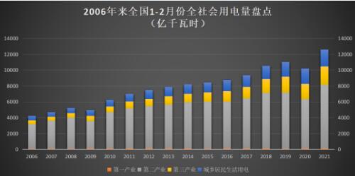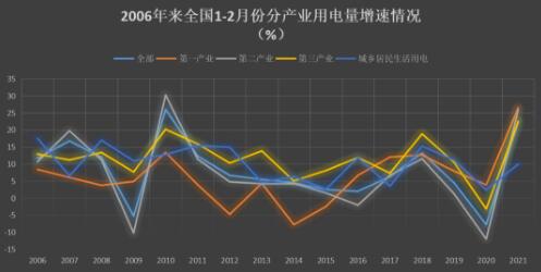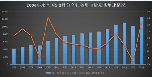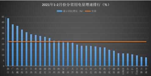 1-2月份,全國(guó)全社會(huì)用電量同比快速增長(zhǎng)。全國(guó)全社會(huì)用電量累計(jì)同比增長(zhǎng)22.24%,增速比上年同期提高30.01個(gè)百分點(diǎn)。