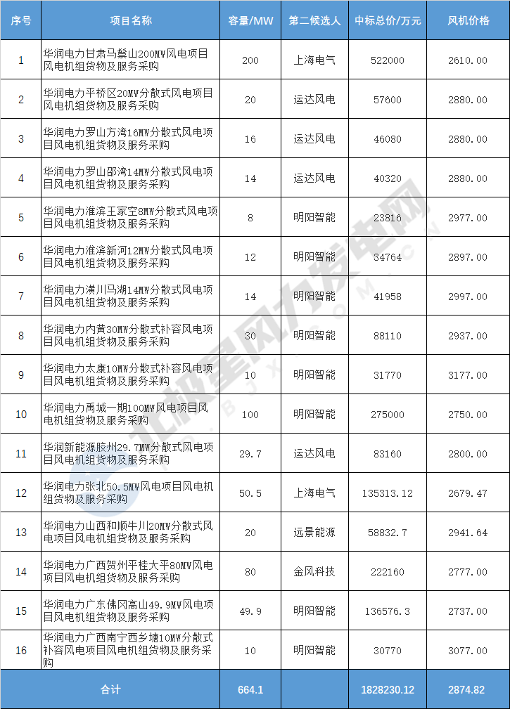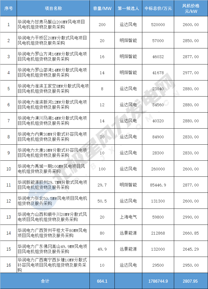 華潤(rùn)電力664.1MW風(fēng)機(jī)采購(gòu)