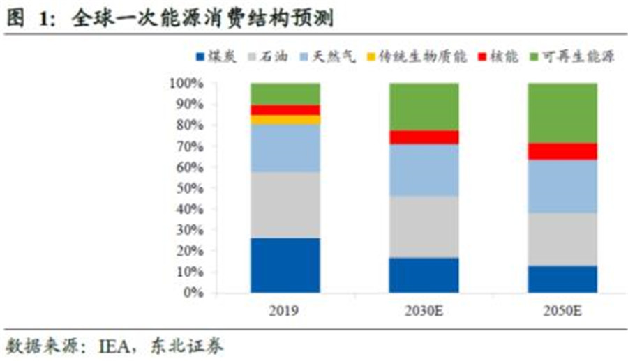 根據(jù)國際能源署(IEA)的統(tǒng)計(jì),2019年石油、煤炭、天然氣等傳統(tǒng)化石能源在全球一次能源消費(fèi)中的占比仍高達(dá)85%,可再生能源的占比僅為10%。