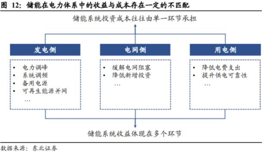 若能通過合理的機(jī)制設(shè)計(jì)使儲(chǔ)能系統(tǒng)的收益與投資成本相匹配,各環(huán)節(jié)投資儲(chǔ)能系統(tǒng)的積極性有望被調(diào)動(dòng),儲(chǔ)能市場的空間將快速打開。