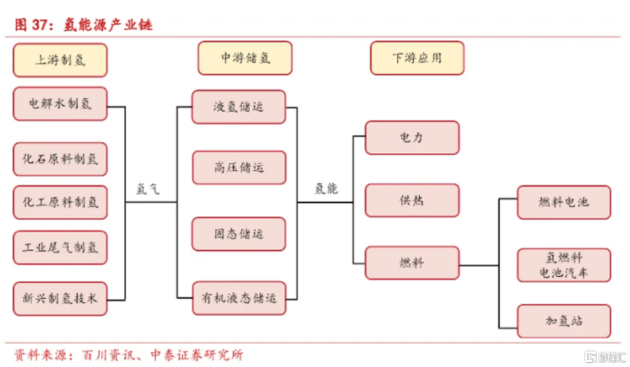 要分析氫能產(chǎn)業(yè)鏈的投資價值,首先來看一下氫能源的整個產(chǎn)業(yè)鏈。
