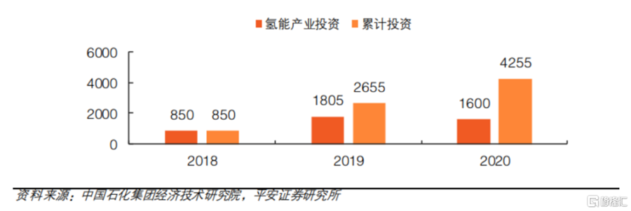 同時,近幾年,氫能產(chǎn)業(yè)的投資規(guī)模在持續(xù)增長,疫情也并未對此積極局面產(chǎn)生影響。根據(jù)公開信息初步統(tǒng)計,2019年氫燃料電池產(chǎn)業(yè)相關投資及規(guī)劃資金1805億元。盡管受到疫情影響,2020年氫能產(chǎn)業(yè)整體發(fā)展速度有所放緩,但在投資方面,投資金額 1600 億元,僅有11%左右的降幅,顯示了市場對于氫能產(chǎn)業(yè)依舊充滿信心。