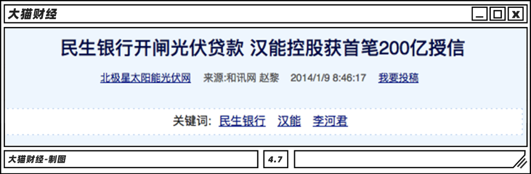 那時(shí)候,李河君與民生銀行董事長董文標(biāo)的關(guān)系也不錯,漢能又拿到了200億的授信。