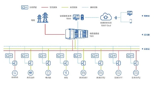 基于電力電子變壓器的交直流混合微網(wǎng)系統(tǒng)總體可分為三層架構(gòu)。第一層為設(shè)備層,主要囊括了分布式電源(風(fēng)電、光伏系統(tǒng)等)和不同的交直流負(fù)荷;第二層控制層,以電力電子變壓器為核心,分布式電源和負(fù)荷可通過其靈活的多端口配置實現(xiàn)可靠接入,并通過其中/高壓接口,實現(xiàn)與配電網(wǎng)的有效連接;第三層為管理層,以“雙端”能量管理系統(tǒng)為核心,采用人工智能算法可實現(xiàn)電力電子變壓器交直流混合系統(tǒng)的分布式能源互補(bǔ)優(yōu)化以及多個端口之間的協(xié)調(diào)控制,提高能源利用效率,多機(jī)并聯(lián)系統(tǒng)的集群控制、功率在線優(yōu)化分配,保障系統(tǒng)效率最優(yōu),同時能夠?qū)与娋W(wǎng)調(diào)度,參與電力市場交易及輔助服務(wù)等,真正實現(xiàn)綠色數(shù)據(jù)中心電能的智能路由。