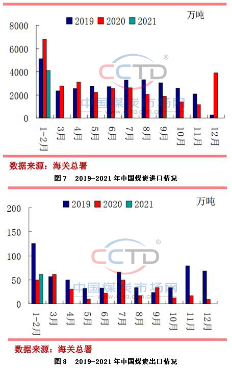 三、2021年1-2月我國煤炭進(jìn)出口市場概況