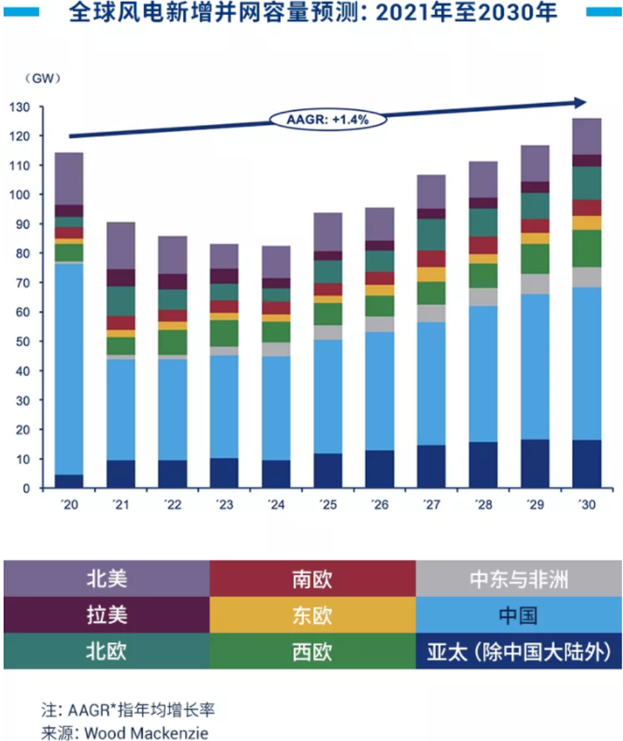據(jù)伍德麥肯茲最新研究Global wind power market outlook update: Q1 2021(《2021年第一季度全球風(fēng)電市場(chǎng)展望》),