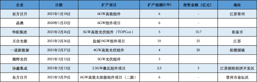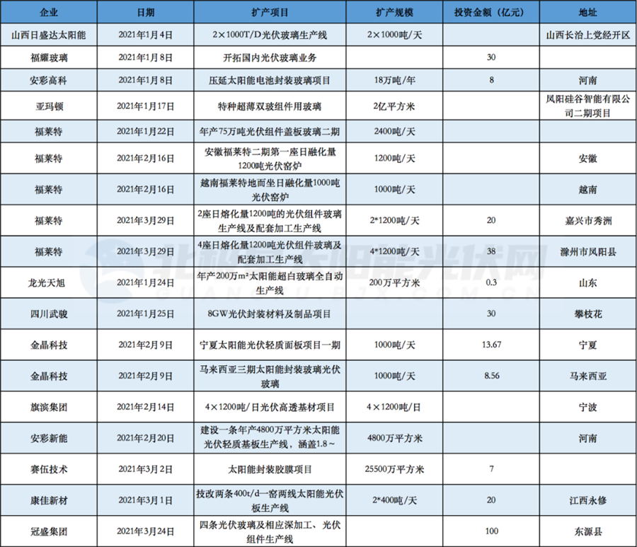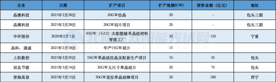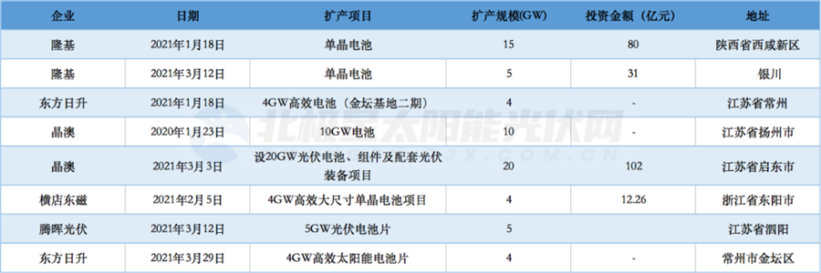 延續(xù)2020年兇猛的擴產(chǎn)浪潮,2021年一季度擴產(chǎn)持續(xù)發(fā)力!