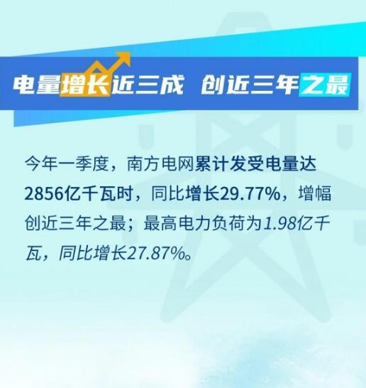 今年一季度,南方電網(wǎng)負荷、電量增長顯著,特別是春節(jié)后負荷恢復速率超過2019年。