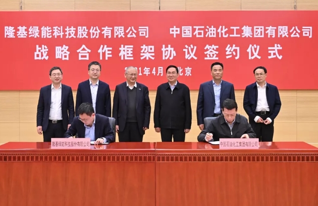 2021年4月13日,中國石油化工集團有限公司(以下簡稱中國石化)與隆基綠能科技股份有限公司(以下簡稱隆基股份)在中國石化總部簽署了戰(zhàn)略合作協(xié)議。根據(jù)協(xié)議:未來雙方將以國家“2030年前碳達峰、2060年前碳中和”目標為指引,發(fā)揮各自優(yōu)勢,通過全方位協(xié)同,在分布式光伏、光伏+綠氫、化工材料等多領(lǐng)域形成深度的合作關(guān)系,共同開拓清潔能源應(yīng)用市場。