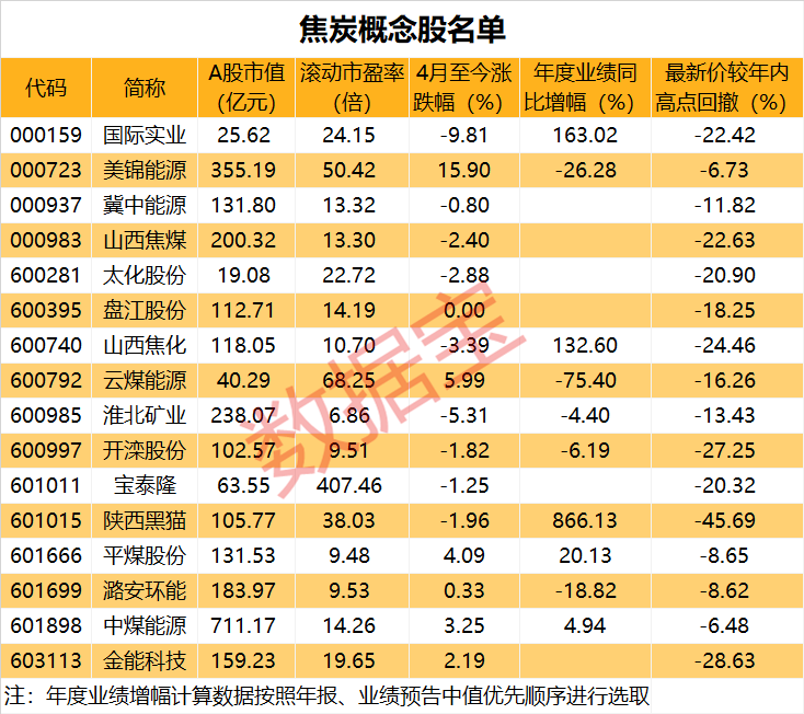 綜合年度業(yè)績和估值水平來看,業(yè)績增長同時估值不足25倍的個股共4只,分別是平煤股份、山西焦化、中煤能源和國際實業(yè)。