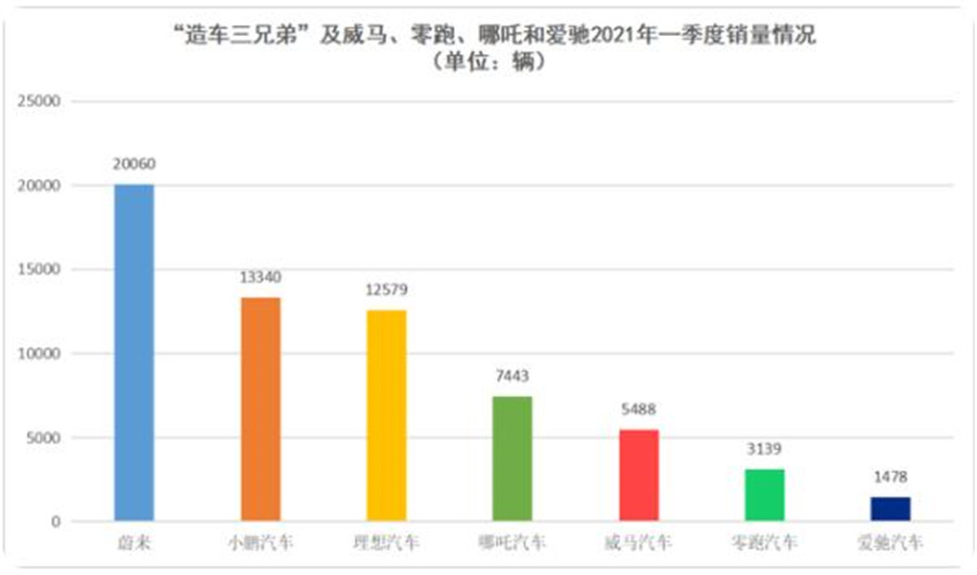 反觀威馬、哪吒、愛馳和零跑等新能源車企,目前均處于第二梯隊(duì)中,一季度銷量僅有千輛,遠(yuǎn)不及“造車三兄弟”。