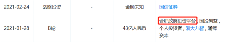 緊接著,今年3月初,據(jù)億歐網(wǎng)報道,零跑汽車獲得了一筆來自國信證券的戰(zhàn)略投資,這也是其繼今年底完成價值43億元人民幣的B輪融資后又一輪融資。據(jù)“某企業(yè)信息查詢平臺”數(shù)據(jù)顯示,這輪B輪融資中,合肥市政府是領(lǐng)投方之一。