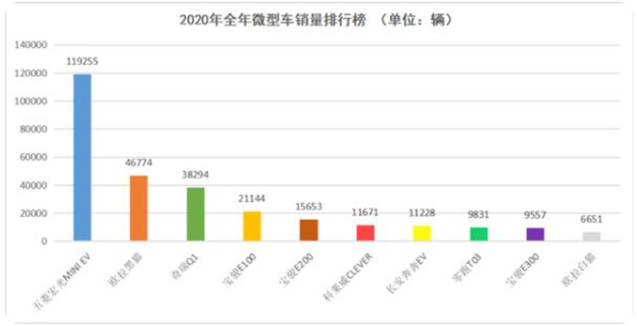 2020年全年微型車銷量排行榜,數(shù)據(jù)來源于乘聯(lián)會,連線出行制圖