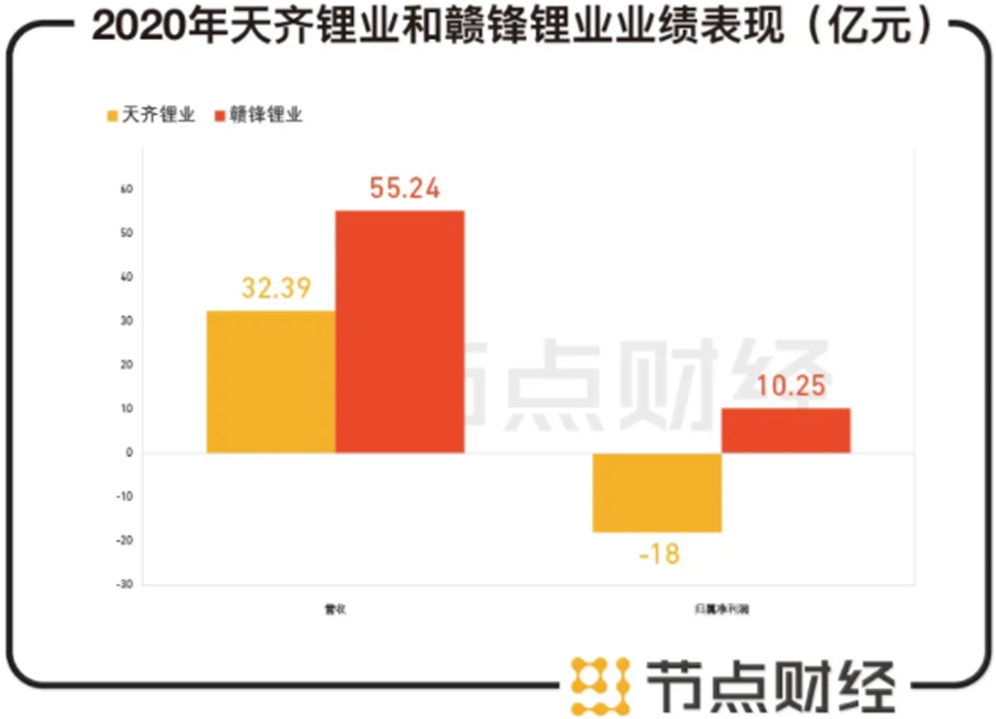 再者,就2020年業(yè)績而言,天齊鋰業(yè)也與贛鋒鋰業(yè)相差甚大。