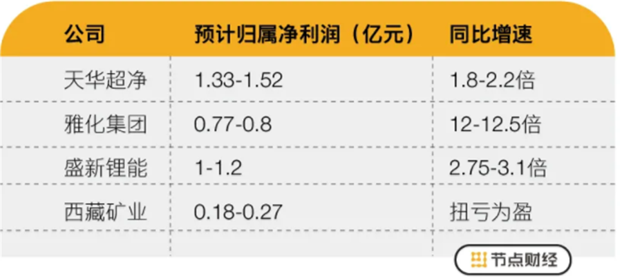 節(jié)點(diǎn)財(cái)經(jīng)梳理發(fā)現(xiàn),截至目前預(yù)告一季報(bào)業(yè)績的鋰企中,包括天華超凈、雅化集團(tuán)、盛新鋰能、西藏礦業(yè)、永興材料等,天齊鋰業(yè)是唯一一家虧損的。