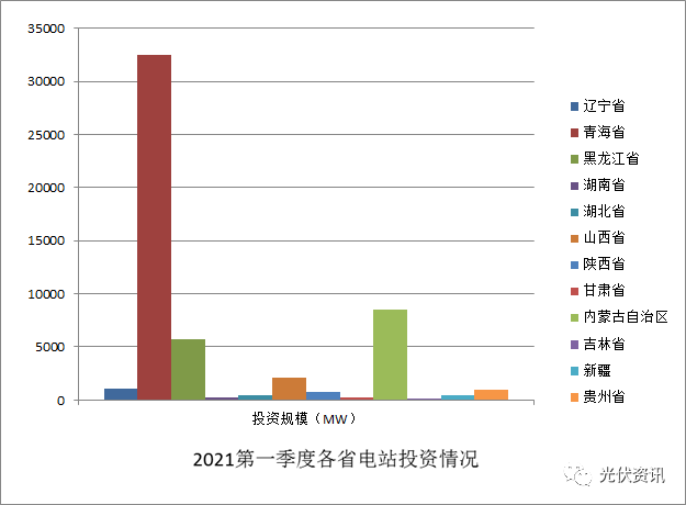2021年第一季度各省光伏電站投資情況如下: