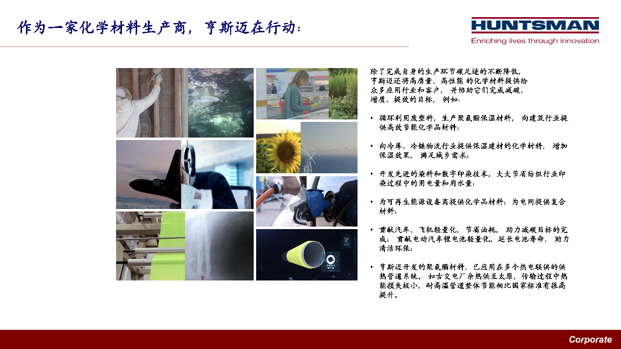 深耕能源化工行業(yè)數(shù)十載的程紅女士重點分析了化工與化學品行業(yè)將如何深度介入潛在的中國碳減排路徑,她從行業(yè)和企業(yè)的雙重角度闡述了“雙碳目標“給化工行業(yè)帶來的綠色發(fā)展契機,以及化工企業(yè)在生產(chǎn)端和消費端持續(xù)參與中國碳達峰和碳中和進程的重要性。以亨斯邁集團為例,她列舉了不同業(yè)務部門的化學品在賦能客戶實現(xiàn)可持續(xù)發(fā)展、降低碳足跡方面的產(chǎn)品應用。她認為,在節(jié)能、降耗、減碳的潛力和硬性任務之外,化工行業(yè)可以向直面消費端的工業(yè)、建筑及交通運輸?shù)阮I域提供化學材料解決方案助力其實現(xiàn)節(jié)能減碳。在談到中國碳減排的關鍵時,她說:“目前,過度使用化石能源而造成的二氧化碳過度排放是全球氣候變化的焦點問題。而在中國,這個問題主要集中在煤炭在發(fā)電、供熱和工業(yè)領域的過度使用。我們很高興看到國家已提出大力發(fā)展可再生能源、不斷深化電力體制改革,構(gòu)建以新能源為主體的新型電力系統(tǒng)。“演講中,程紅女士也表達了化工行業(yè)和本企業(yè)對未來中國碳達峰和碳中和配套政策的期待。