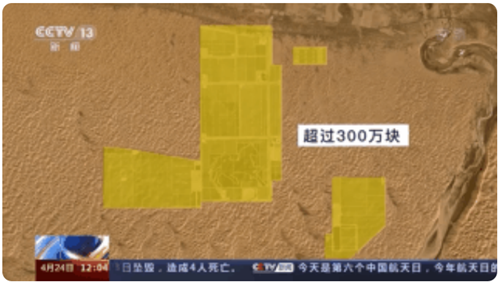 近三年,在庫布齊沙漠上,出現(xiàn)了大片的方格。經(jīng)過確認,這是一排排的光伏板。僅這個駿馬圖案,就是由近20萬塊光伏板組成。目前,整個區(qū)域的數(shù)量超過300萬塊,是全國最大的沙漠集中式光伏發(fā)電基地。而且面積還將擴大,即將啟動的三期項目一旦完工,整個基地的年發(fā)電量可達40億千瓦時,相當于一個經(jīng)濟強縣一年的全社會用電需求。